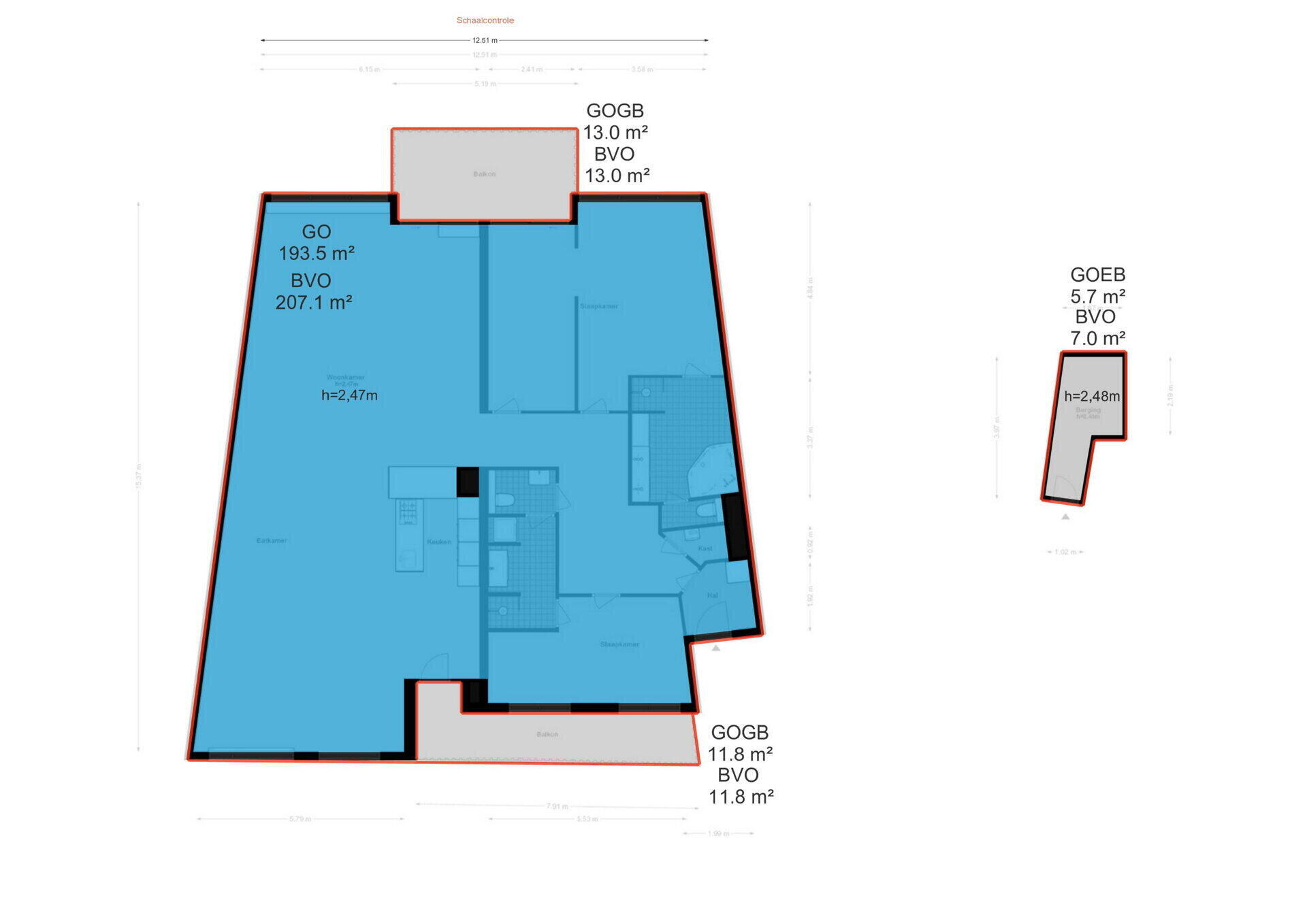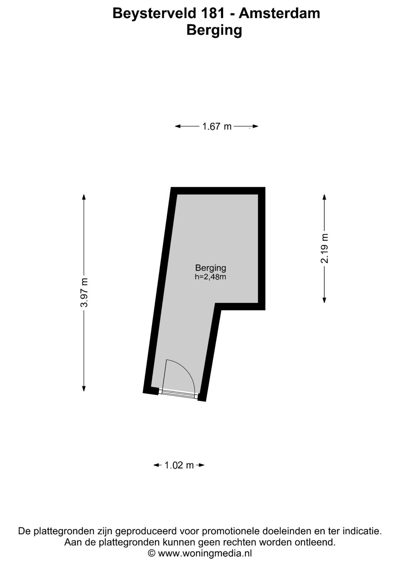 Het verkochte is gemeten met gebruikmaking van de Meetinstructie, welke is gebaseerd op de normen zoals vastgelegd in NEN 2580. De Meetinstructie is bedoeld om een meer eenduidige manier van meten toe te passen voor het geven van een indicatie van de gebruiksoppervlakte. De Meetinstructie sluit verschillen in meetuitkomsten niet volledig uit door bijvoorbeeld interpretatieverschillen, afrondingen en beperkingen bij het uitvoeren van een meting.